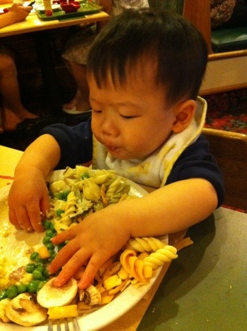 EJ was having a blast! He doesn’t really like me feeding him anymore. He likes feeding himself. Of course he makes mess!